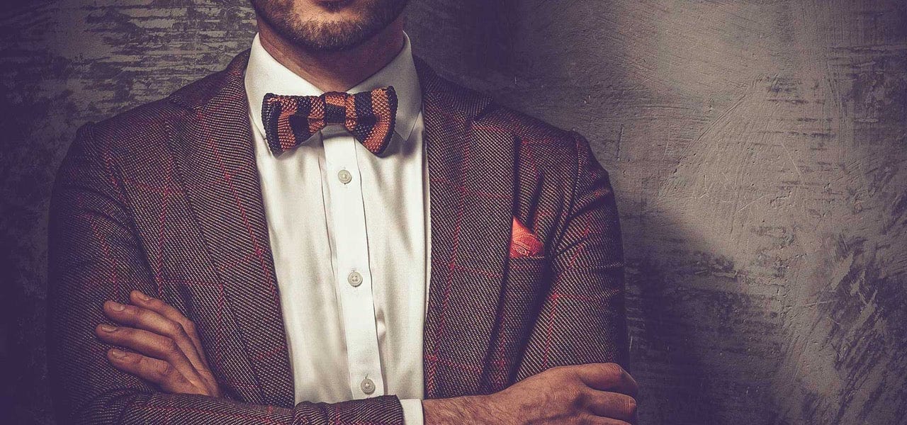 • Quirky touches like bowties and uniquely patterned pocket squares are your go-to